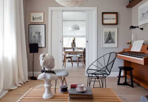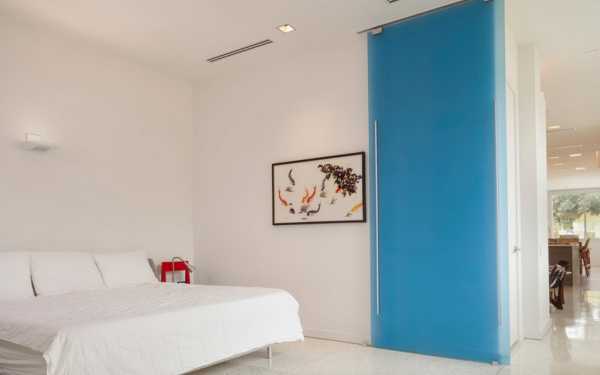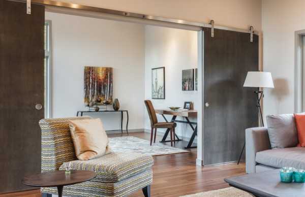 Просто оптимальный интерьер создан при помощи интересных межкомнатных раздвижных дверей.