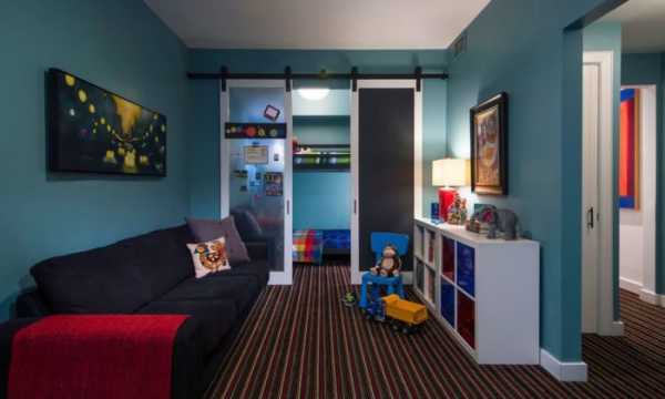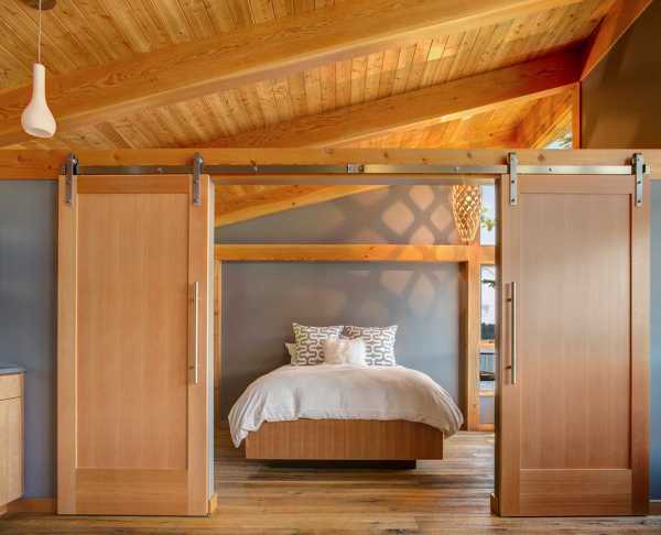 Отличный вариант оформить раздвижными дверьми места для сна, которые можно спрятать.