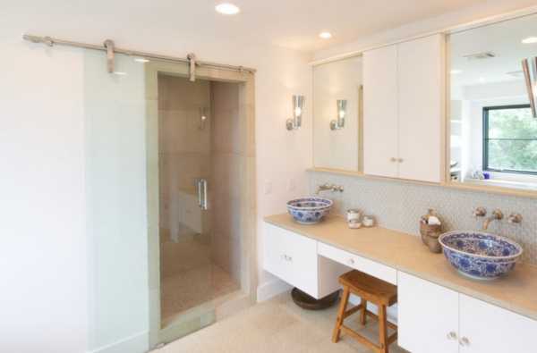 В однокомнатной квартире можно при помощи раздвижной двери отделить спальное место. Если, например, в квартире проживает семейная пара, один может спокойно смотреть телевизор или работать на компьютере, пока другой спит или отдыхает. А в спальне можно таким образом организовать гардеробную или кабинет. В ванной комнате или совмещенном санузле раздвижная дверь подойдет для душевой кабины.