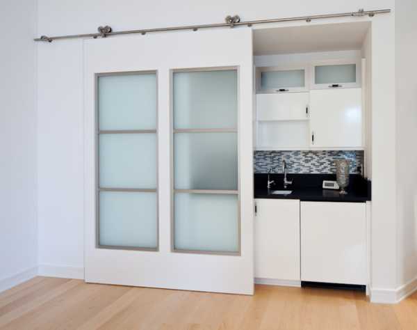 - Экономия пространства. Довольно часто приходится отказываться от покупки мебели, которая замечательно подходит для кухни или комнаты, из-за того, что тогда не удастся закрыть распашную дверь, или постоянно придется с осторожностью ее обходить. Раздвижные двери помогут справиться с той проблемой.