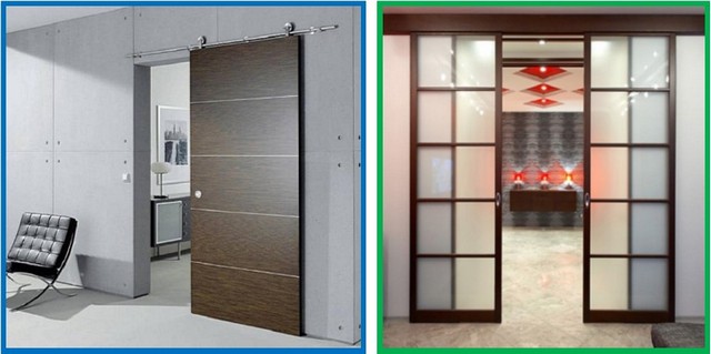 - встроенными, когда благодаря особой конструкции перегородки дверь уезжает в стену.