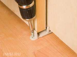 Процесс собственно монтажа начинается с закрепления раздвижной двери на нижней роликовой направляющей