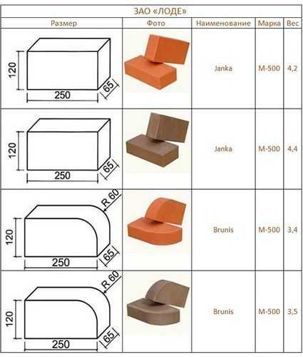 - Размеры, форма, вес, тип поверхности (для облицовочных марок).