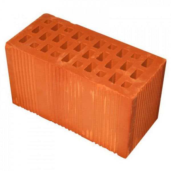 Пустотелый кирпич имеет 46 % пустот от всего размера. За счет этого стена обладает прекрасными теплоизоляционными свойствами и не поглощает в себя большой объем влаги. Его нельзя применять при строительстве несущих многоэтажных сооружений и конструкций. Идеален для небольших построек, например, дачи, его нередко используют для перегородок. Габариты – 250×100×600 мм, а вес – 4 кг.