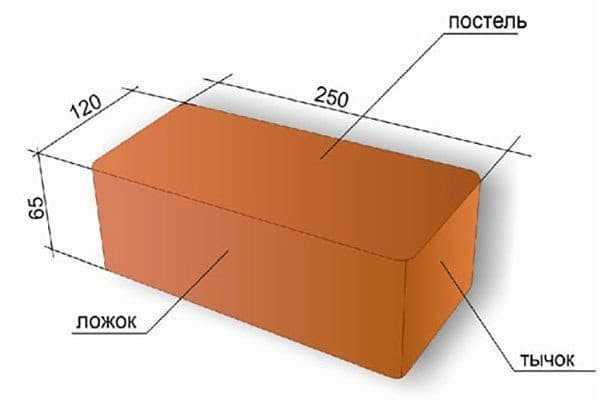 - Ложок – средняя по размерам грань 250х120 мм;