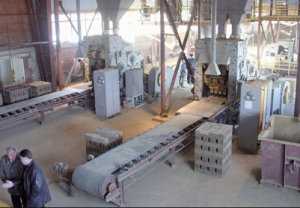 Из этого сырья можно получить продукт более высокого качества, применив технологию полусухого формования. Исходное сырье с влажностью не более 12% подается под пресс и формуется сырец, не только правильной геометрической формы, но и с внутренними пустотами.