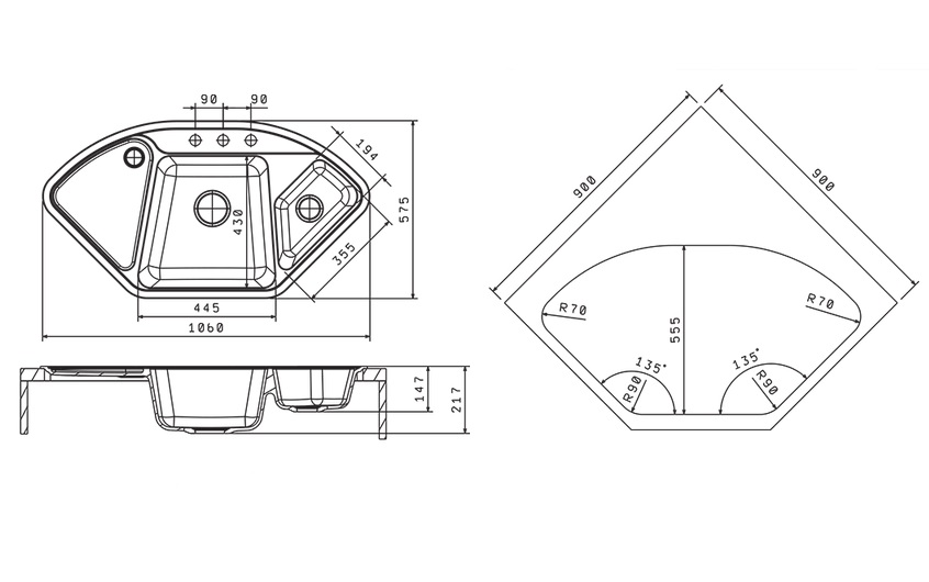 Если вы устанавливаете круглые или овальные мойки, вы должны измерить их диаметр или расстояние в самой широкой части раковины.