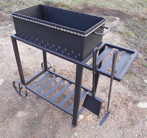 Мангалы из металла оборудованы полочками для мяса и дров, для воды и для разных аксессуаров. К ним приделываются трубы, чтобы дым не мешал готовить, и крыша обеспечивала защиту от дождя. Для отделки применяются кованые детали, а сами изделия должны отливаться из чугуна, придавая им внешний вид настоящих произведений искусства.