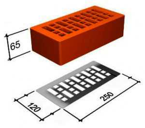 Стоит отметить, что в данном случае пустотелый и полнотелый камень не имеет принципиальных отличий в габаритах. Размеры полнотелого варианта такие же, как и пустотелого – 250x120x65 мм. Пустотелые формы весят меньше, таким образом при одинаковом объеме кирпича, мембранная структура делает его значительно легче.