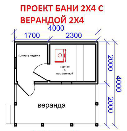 Чтобы разместиться тут 2-3 посетителям минимально требуется 1,8х1,8 м площади. В этом пространстве расположится кабинка с горячим водопроводом или ушат с водой. Стандартными параметрами для четверых пользователей моечной станет значение в 2,0х2,0 м.