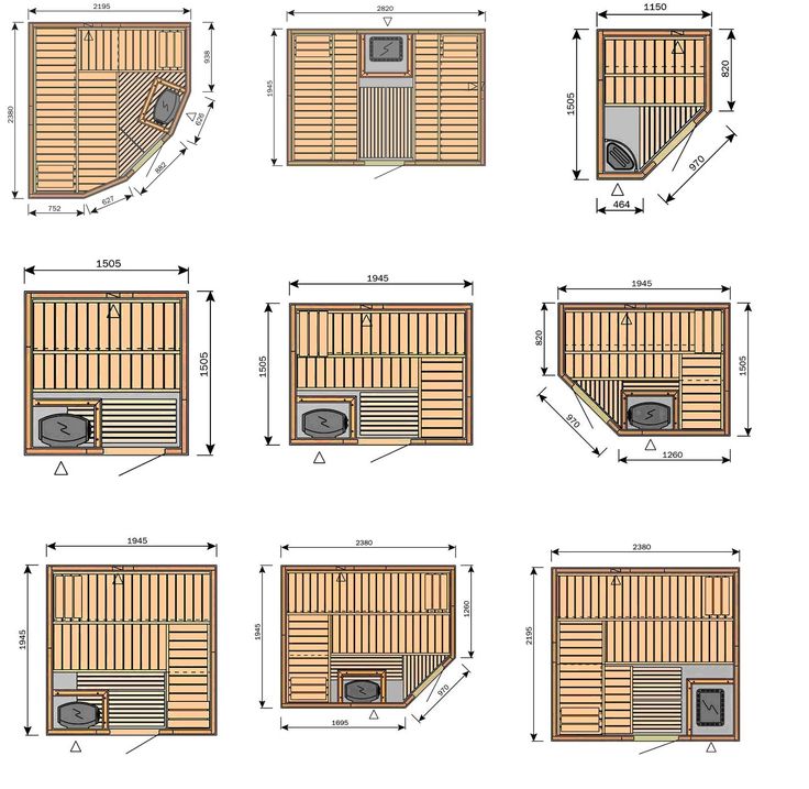 Оптимальные габариты скамеек, установленных в парилках, определяются функциональными особенностями их использования: