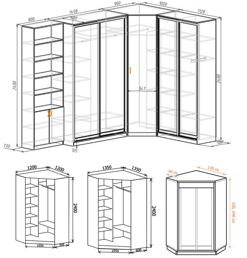 Угловой шкаф в спальню, размеры и чертежи: виды конструкций, размеры, чертежи