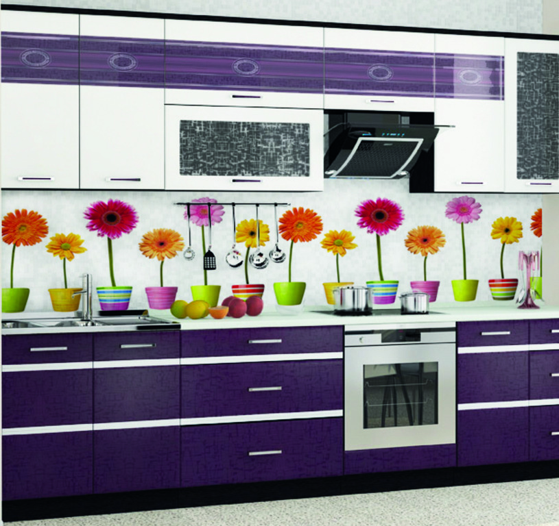 Полимерная пленка может быть однотонной или с узорами, глянцевой или матовой. Если вы не нашли требующегося рисунка, на стеновой фартук для кухни из МДФ можно нанести любое выбранное вами изображение.