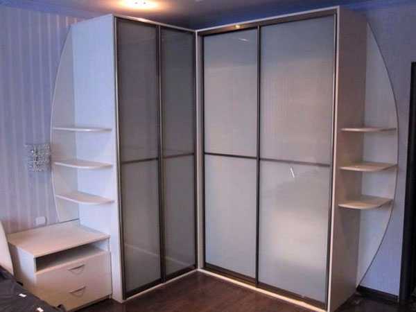 - Внешняя привлекательность. Здесь все зависит от вашего выбора и вкуса. Сегодня производители предлагают широчайший ассортимент. Угловой купе бывает полностью закрытым, иметь открытую конструкцию, прозрачные двери, наружные полки. Остается только остановить свой выбор на том варианте, который идеально подойдет под интерьер вашей спальни.