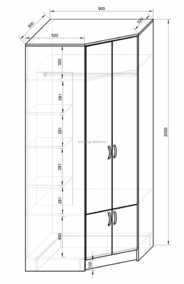 Угловой шкаф в спальню, размеры и чертежи: виды конструкций, размеры, чертежи