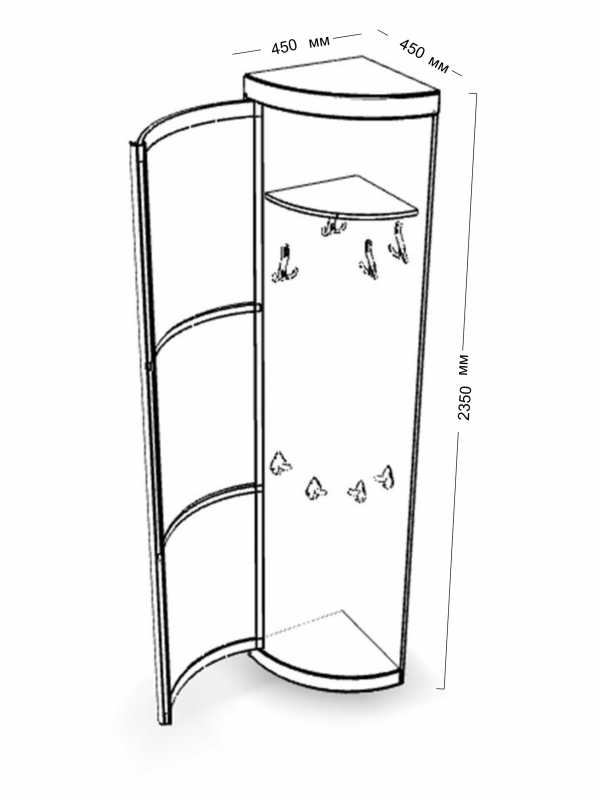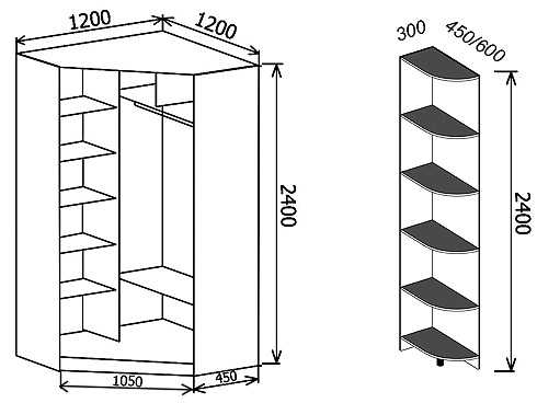 Примеры схем угловых шкафов с размерами