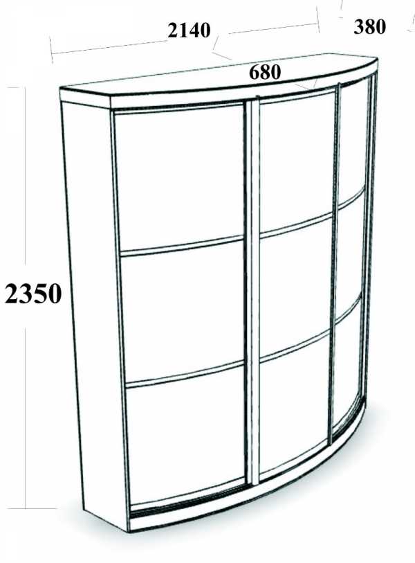 Вписать такую конструкцию в жилое помещение несложно, потому что они, как и другие типы угловых шкафов, изготавливаются в стандартных размерах. Высота радиусного шкафа купе для одежды может меняться от 1,8 до 2,4 м, ширина – от 1,2 и до 2,1 м, а глубина — от 85 см и до 1 м. Если говорить о шкафе тумбе купе для кухни, то зачастую производители предлагают модели с параметрами 0,9 на 0,9 м, высотой 0,85 м и глубиной 1 м.