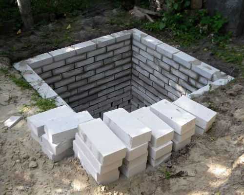 Форма емкости — любая, но чаще делают квадратную, иногда — круглую. Стенки выкладывают из кирпича, бетона, бутовой кладки, просмоленной древесины. Можно емкость сделать из бетонных колец. Только в этом случае нужно будет побеспокоиться о герметичности стыков и дна.