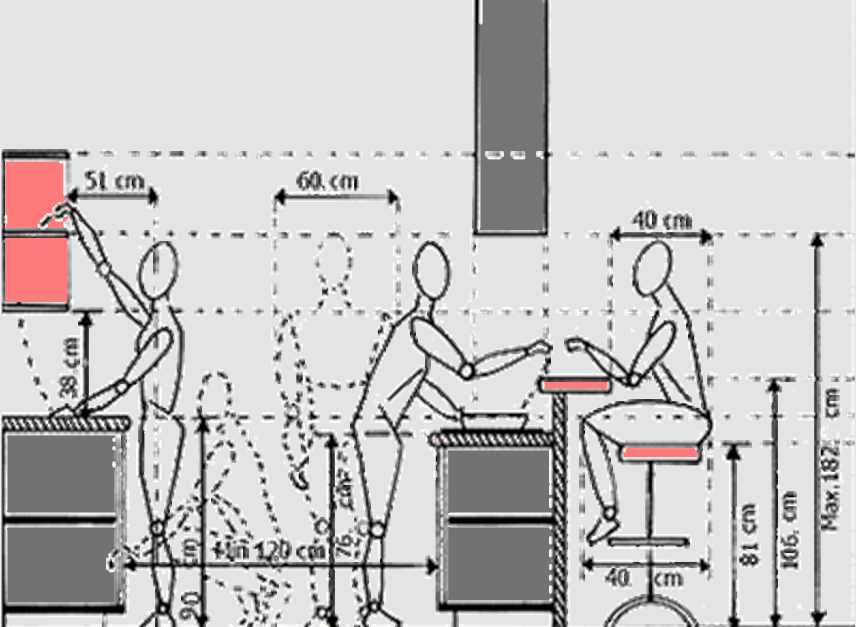 При выборе места для сидения на кухне или в баре можно выбрать три основных варианта высоты сидения на кухне; Высота стола, высота столешницы и высота барной стойки. Для каждой из этих высот существуют общие правила относительно того, сколько места для коленей требуется для комфортного сидения. Чем выше высота столешницы, тем меньше места для колен требуется.
