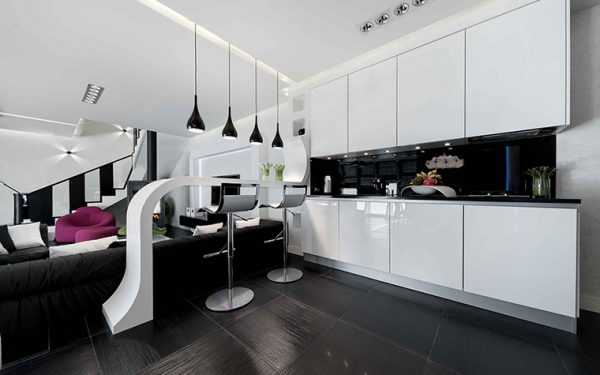 Проект кухни, объединенной с гостиной с барной стойкой, предполагает тщательную проработку дизайна интерьера, ибо требуется подобрать мебель, соответствующую друг к другу по дизайну, техническим характеристикам, функционалу.