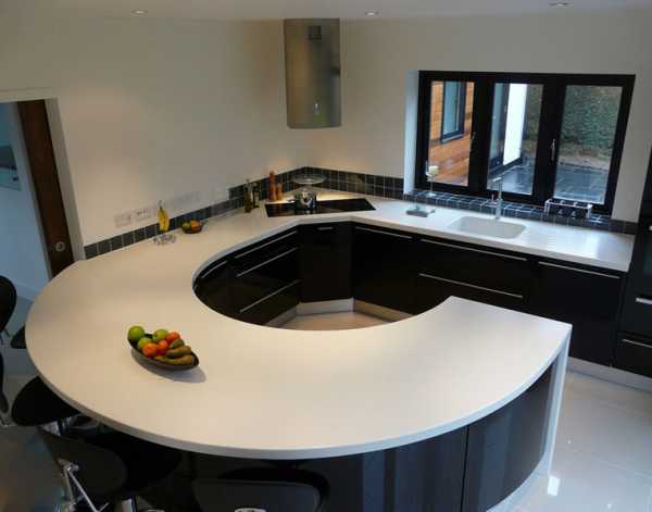 Островная модель просто изумительно впишется во вместительное и дорого-оформленное кухонное помещение. На необычном и функциональном «острове» можно с успехом разместить стильную сенсорную электроплиту, современный духовой шкаф или шикарную мойку, либо добиться сочетания всех трёх (и более) элементов в комбинированном варианте.
