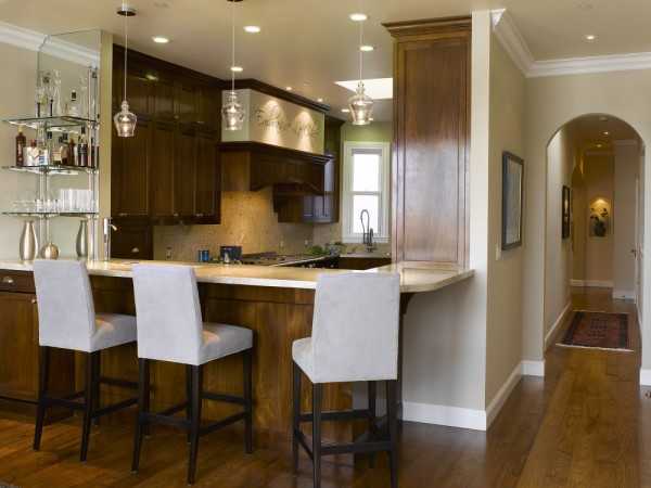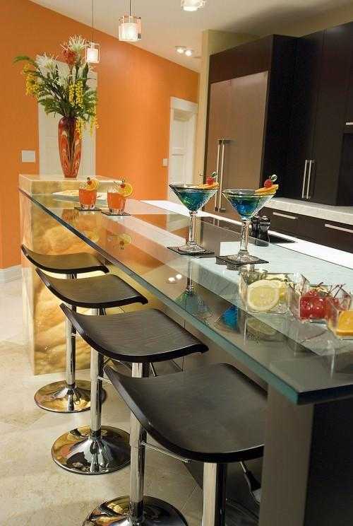 Еще совсем недавно барная стойка была атрибутом исключительно увеселительных заведений и объектов общепита: клубы, бары, рестораны. Но все чаще ее можно встретить и на домашней кухне. Возможность установки такого новшества ни в коей мере не зависит от габаритов помещения. Поэтому появляются они практически повсеместно: в маленьких квартирах, в просторных частных домах, на кухнях уютных загородных дач.