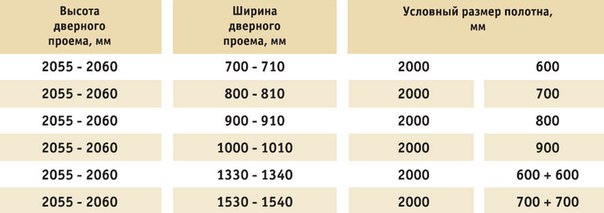 | Дверь (ширина*высота) | Ширина проема | Высота проема |