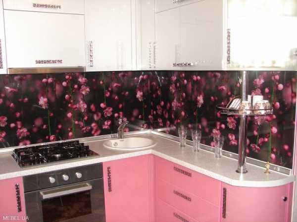 Оформление рабочей стены таким материалом поможет визуально расширить пространство в небольшом помещении. Идеальным вариантом будет панель из прозрачного стекла, а за ним поместить какое-либо изображение или просто цветной материал, то с помощью подсветки можно создать эффект зеркала, что зрительно расширит помещение.