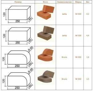 Таблица характеристик кирпича