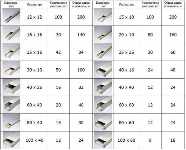 Размеры стандартных кабель каналов из пластика
