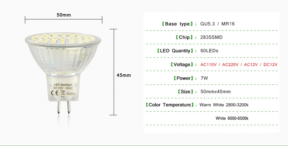| PAR16 | 16 | 2 | 50 | R50 |