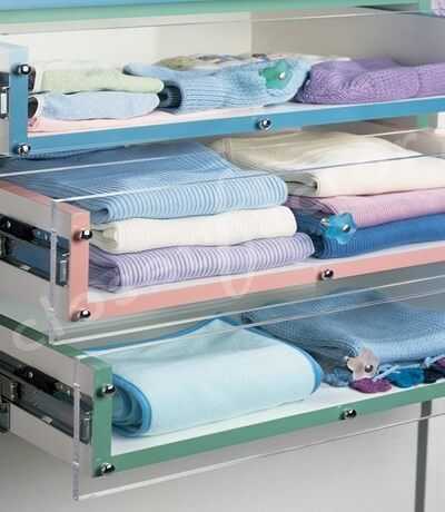 Самые удобные модели ящиков — с прозрачной передней стенкой. Они позволяют видеть содержимое ящика, не выдвигая его.Проектируя ящик и рассчитывая его ширину, обязательно учитывайте ширину петель у распашных дверец и стыки дверей в шкафах-купе. Если ящик будет сделан на всю ширину по максимуму, он может просто не выдвинуться.