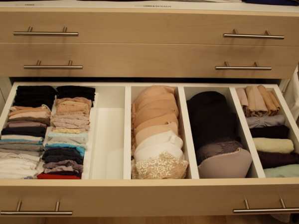 Разделители и органайзеры в выдвижных ящиках помогают предотвратить хаос. Они могут быть встроенными в ящик, а могут и продаваться отдельно от него. Если вы терпеть не можете сваленное в кучу белье — лучше потратиться на эту дополнительную опцию и с наслаждением раскладывать носки по ячейкам. Как пасьянс.