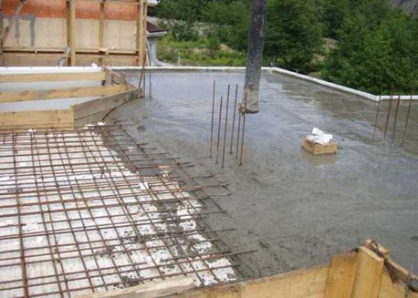 После строительства стен, перемычек и колонн очередного этажа устанавливаются дополнительные временные опоры. На общее опорное поле укладывается съёмная алюминиевая или деревянная опалубка. Поверх опалубки монтируется арматурный каркас. Каркас соединяется с арматурными прутьями стен и перегородок. После этого в опалубку заливается цементный раствор. Для повышения прочности его уплотняют с помощью виброреек и вибролотков. Так как бетон лучше схватывается при температуре порядка 70 градусов тепла, его укутывают теплоизоляционными материалами и готовят с использованием горячей воды. Все видели «палатки и шалаши» над пролётами строящихся мостов.