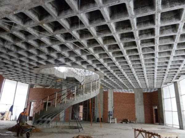 Кессонные перекрытия обладают высокой прочностью и используются в случаях, когда необходимо перекрыть большую площадь без установки дополнительных опор.