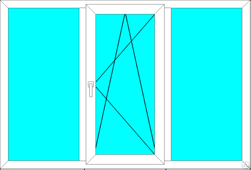 Его конструкция состоит из двух достаточно узких боковых створок с широкой секцией между ними. В стандартном исполнении центральная часть глухая.