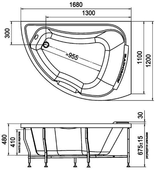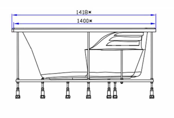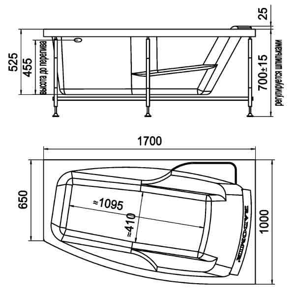 Акриловая ванна с размерами на схеме