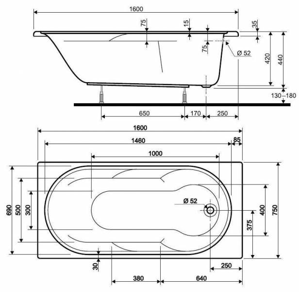 - Длина ванны из стали, согласно стандарту, может составлять 150-180 см. Чем длиннее модель, тем она комфортабельнее.