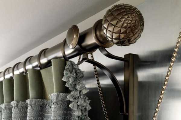 Карниз в тон штор или стен «растворится» в интерьере, чтобы сделать акцент, следует подобрать красивые кронштейны и наконечники