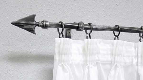Карнизы из металла легко выдерживают даже самую тяжелую ткань, а чтобы металл не казался слишком холодным и строгим для них выпускается большое количество оригинальных наконечников. Выполненные из кованого металла, стекла, украшенные стразами и фурнитурой, разной геометрической формы, они визуально облегчают конструкцию и придают карнизу индивидуальность.
