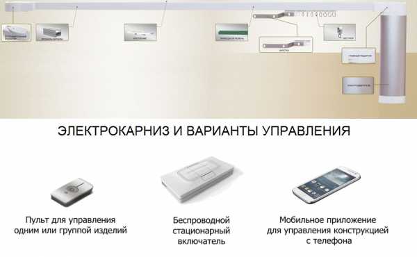 Электрокарниз для портьерных штор и занавесей с вариантами управления.Электрокарнизы для штор имеют три типа управления: