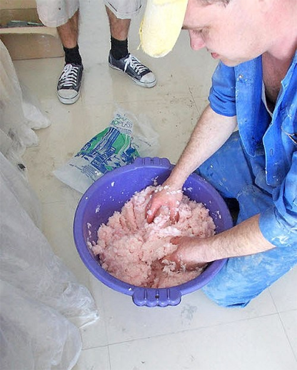 Вся смесь быстрее схватится и станет твердой, если в нее добавить больше гипса. Это нужно учитывать и не добавлять весь гипс, лучше его всыпать постепенно.