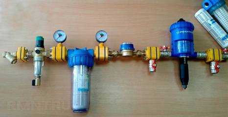 - При надобности поставьте входной вентиль и подключите к нему фильтр грубой очистки.