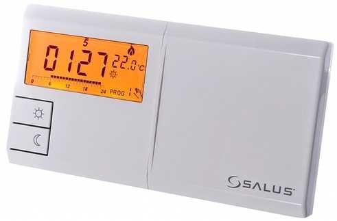 Регулятор температуры для электрических котлов фирмы Salus модели T105RF – это беспроводной недельный программатор, позволяющий задавать два уровня температуры: «комфортный» и «экономный» в интервале 7-300С, с шагом – 0,50С.