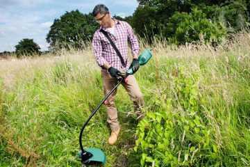 - Для скашивания густо растущих грубых сорняков потребуется более мощная электрическая коса в один киловатт.