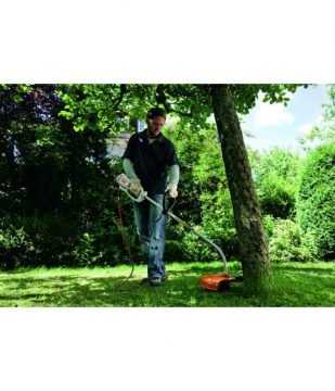 - Его удобно использовать для кошения травы вдоль забора, вокруг деревьев и так далее.