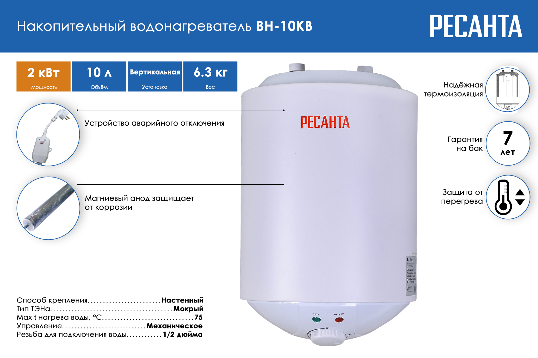 -условие ежегодной замены магниевого анода для гарантийного обслуживания.