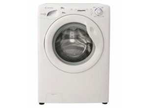 - Candy GC41062D. А вот эта стиральная машина 2 года подряд входила в топ 10 лучших стиральных машин народного рейтинга европейских потребителей. Данный рейтинг сейчас является одним из самых авторитетных. Характеристики стиральной машины говорят сами за себя: корпус ШхГхВ – 60х40х85 см, вместимость – 6 кг белья, вращение барабана – 1000 оборотов, устойчивая, отлично стирает. Ремонтируется условно сложно, да и срок службы сравнительно небольшой, поэтому лишь 2 место. Цена – 243 доллара.