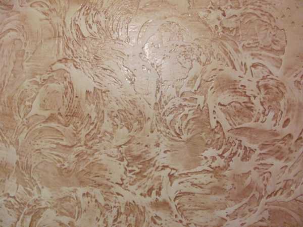 Сделать фактуру можно той же кельмой или шпателем: слегка нажимая на один край проводить инструментом по свежему слою отделки. Движения руки могут быть круговыми, волнообразными или в произвольном направлении.