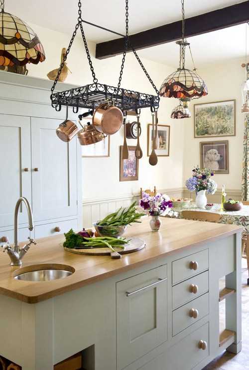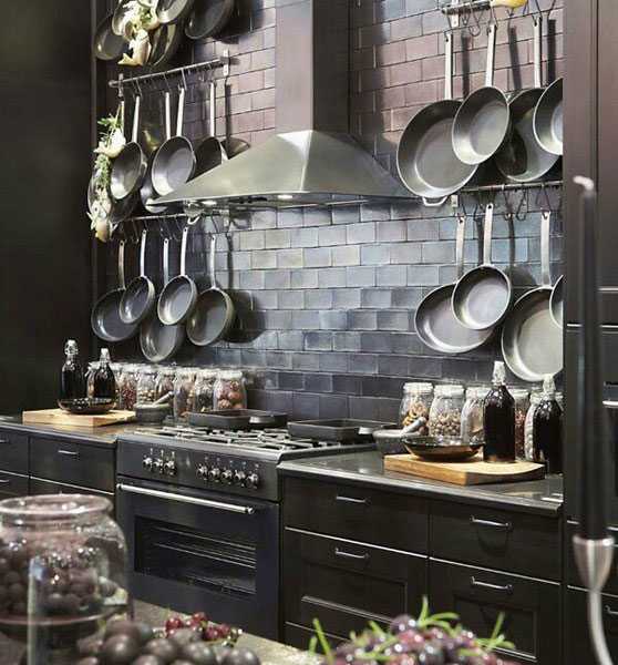 Непривычной для нашего менталитета стала и европейская привычка хранить кастрюли и сковороды над головой. Обычно этот вариант востребован на кухнях с островом.